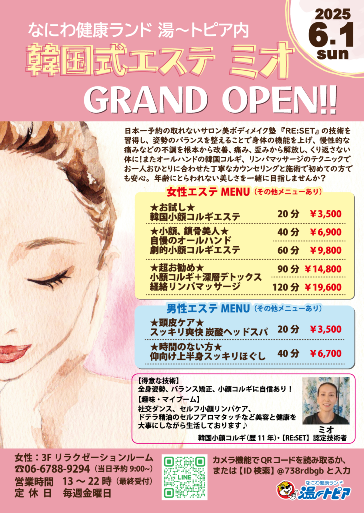 6/1~ 韓国エステ&よもぎ蒸しOPEN!