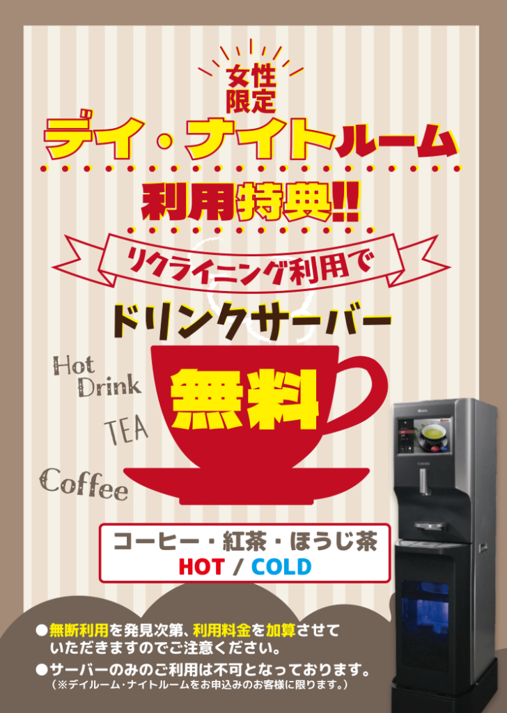【女性のお客様限定】3Fリクライニングシート利用特典!