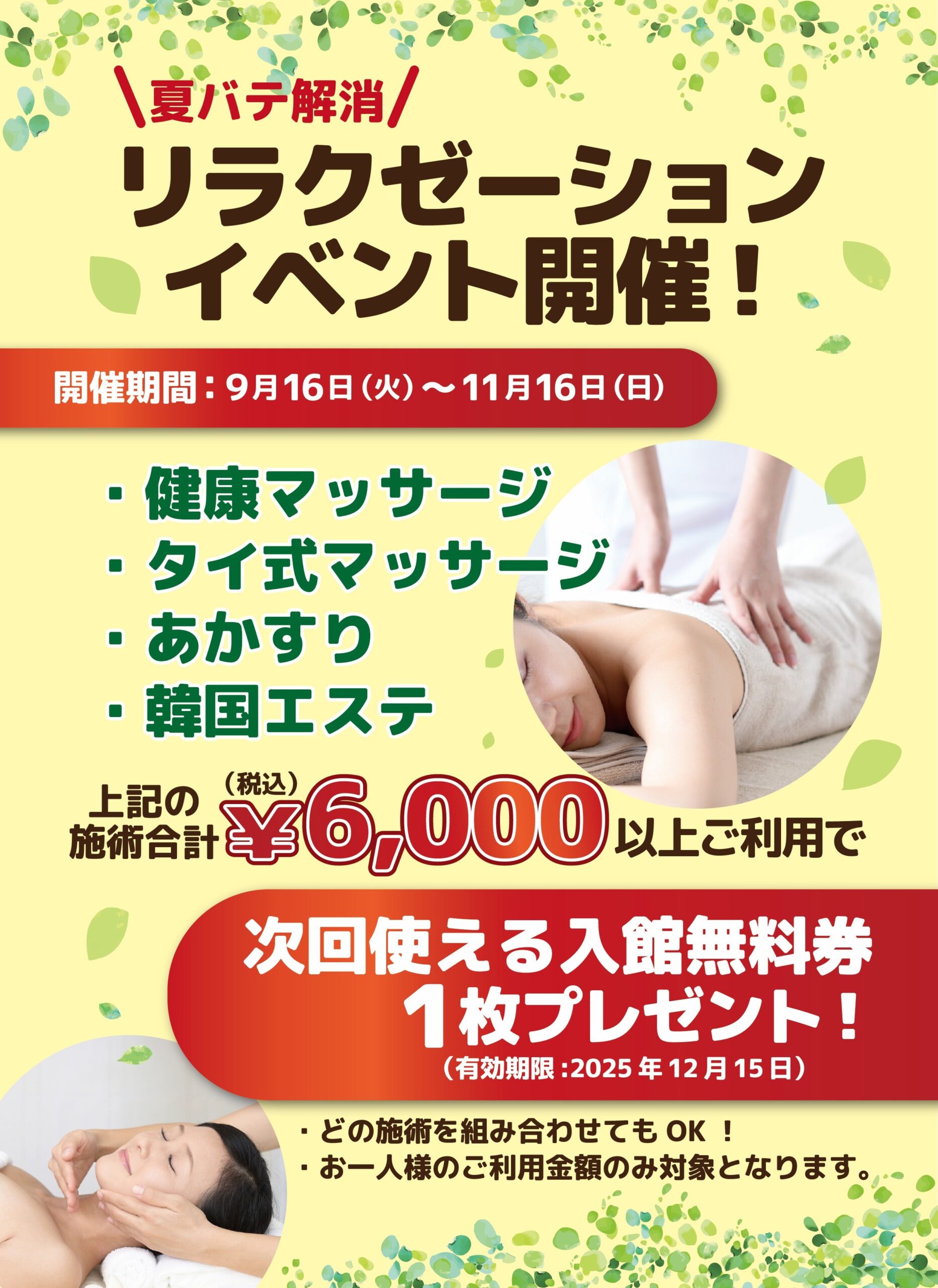 9/16~ リラクゼーションイベント開催のお知らせ!